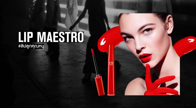 GIORGIO ARMANI เปิดตัว LIP MAESTRO คือ Intense Velvet Color ลิปแลคเกอร์เนื้อแมทสูตรแรก จุดเริ่มต้นของลิป MAESTRO เกิดขึ้นในปี 2011 หลังเวทีโอต์กูตูร์โชว์ประจำฤดูใบไม้ผลิ ที่ “ลินดา กานเต็ลโล” (Linda Cantello) ช่างแต่งหน้าระดับสากลของจิออร์จิโอ อาร์มานี่ ได้พัฒนานำเอาพิกเม้นต์บริสุทธิ์สีพลัมผสมเข้ากับเจลใสเนื้อกำมะหยี่ เพื่อให้ได้ลิปสติกเนื้อแมทท์ที่อิ่มสวยและฉ่ำวาว LIP MAESTRO มีเฉดสีให้เลือกทั้งหมด 27 เฉดสี แต่เฉดที่ถือว่าเด็ดและขายดีที่สุดของลิปรุ่นนี้ก็คือ LIP MAESTRO เบอร์ #400 ที่ถูกยกย่องว่าเป็น “Universal Red” เฉดสีแดงที่เหมาะกับสาวๆทุกสีผิว ซึ่งผ่านการทดลองกว่า 90 ครั้งถึงจะค้นพบเฉดสีที่ลงตัว สำหรับลิปเบอร์ #400 เป็นสีแดงเข้มโทนเย็นคลาสสิค ที่ช่วยขับให้สีผิวดูสว่างไม่มีติดโทนสีชมพูหรือออกโทนส้มเมื่อทาลงบนริมฝีปาก จุดเด่นของลิปรุ่นนี้อีกอย่างนึงก็คือ เนื้อสีที่แน่นปกปิดแบบ Full Coverage ปาดเดียวกลบสีปากมิด ติดทนยาวนาน ผ่านไป 7 ชั่วโมงสีปากยังคมชัดอยู่ เนื้อนุ่มแต่บางเบาไม่หนักริมฝีปากหรือทำให้รู้สึกแห้ง …