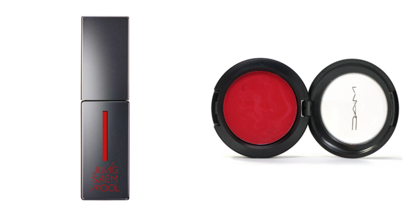 Lips : คีย์ของลุคเราวันนี้ ใช้ JUNG SAEM MOOL – High Tinted Lip Lacquer Hyper Matt สี Red Made แล้วเบลนสีปากทั้งบริเวณปาก และขอบๆให้ดูเบลอด้วย M.A.C Eye Shadow สี Give Me Fire