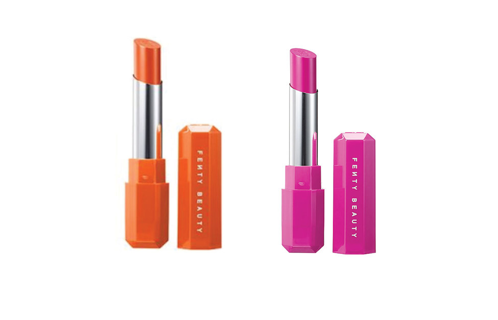 Fenty Beauty Getting Hotter #Tropic Tantrum  ใช้สีส้มทาไปที่ปากบน ส่วนปากล่างทาสีชมพู วิธีทาคือทาแบบแทปไม่ตัดขอบปากให้คมมาก ใช้พู่กันแทปๆให้เป็นขอบแทนการวาด
