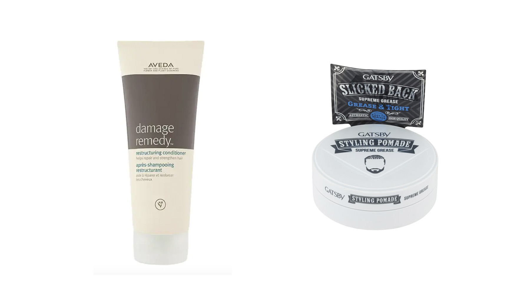 ใช้ครีมนวด AVEDA Damage Remedy™ Conditioner ผสมกับ GATBY Styling Pomade Supreme Grase ทากับผสม ให้จับเส้นกัน และได้ความเงาแบบผมเปียก