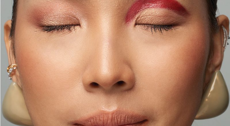 BROWS CANMAKE Quick Lash Curler ปัดจัดทรงให้คิ้วตั้งได้รูปเป็นระเบียบ Make Up Store Premium Tri Brow Brunette ใช้ที่ปัดคิ้วแบบฝุ่นปัดเก็บรูปคิ้วให้ได้ทรงมากขึ้น ใช้สีเข้มสุดวาดหางให้มีมิติ ใช้สีกลางเก็บรูปคิ้วทั้งหมดอีกที แล้วใช้สีอ่อนเบลนจากหัวคิ้วไล่ลงไป MAYBELLINE Alice & Olivia Hypercurl Mascara ใช้แปรงปัดคิ้วแต้มมาสคาร่าแล้วขยี้ที่หลังมือก่อนไม่ให้สีดำเข้มมากเกินไป แล้วปัดขนคิ้วเพิ่มมิติ EYES MAC GIRLS Eyeshadow Palette / Risk Taker เบลนสีพีชแบบแมทท์และสีกลิตเตอร์เข้าด้วยกันให้ลักษณะเป็นหางวีแล้วค่อยๆเบลนฟุ้งเข้ามาที่กลางตา Tarte Chrome Paint Shadow Pot: Sun Drenched ใช้สีทองแตะที่เปลือกตาให้ตรงกลางสว่างขึ้น พิกเมนต์ตัวนี้ใหญ่ชัด แน่นได้ใจมาก 3ina The Cream Eyeshadow 314 เนื้อมีความเป็นครีมมี่ เลือกใช้แปรงแบนขนาดกลาง ปาดจากหัวตาไปหางตาได้ง่ายๆ ทำให้เส้นมีความคมชัด จากนั้นใช้สีทองของ tarte …